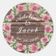 Rustic wooden floral script wedding stickers