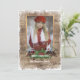 Unique, classic, trendy, pretty and decorative Holiday card, with a pretty dark red and green coloured floral wreath. With room to customize or personalize with a photo and names (or family name) of your choice on a rustic country cottage style weathered farmhouse barn wood planks texture pattern. And a customizable season greeting poem on the backside of the card.