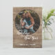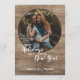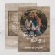 Unique, classic, trendy, rustic and decorative Holiday card, with Happy Holidays Joyful New year text quote, and room to customize or personalize with a photo and names (or family name) of your choice on a rustic country cottage style weathered farmhouse barn wood planks texture pattern. And a customizable season greeting poem on the backside of the card.