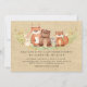 Watercolor woodland animals baby shower invitation set on a tan burlap background with a coordinating dark brown back for a baby girl or boy & a gender neutral baby shower.