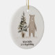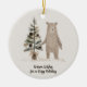 Rustic Woodland Bear with Christmas Tree Ceramic Ornament