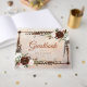 Featuring a wooden frame bordered by an assortment of white, hickory and burgundy flowers, let your guest share their well-wishes and messages with this guestbook from the Rustic Woodland Feathers and Floral Bloom Collection. Personalize with your name and wedding date on the front, your initials at the back and your custom text on the spine of the guestbook. The background is set on a beige, chestnut, taupe and umber hand painted canvas with movable graphic elements for an even greater degree of customization.