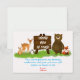 Kid's birthdays thank you card with theme of rustic woodland and forest animals.