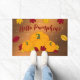 Rustic Woodsy Hello Pumpkin! Red & Gold Fall Leaves & Sparkly Orange Pumpkins Seasonal Doormat.