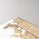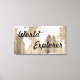 Beautiful and stylish world explorer themed canvas print with light wooden antique planks background and a white world map silhouette.