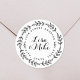 Custom-designed wedding round address labels featuring hand drawn style foliage wreath with personalized couple names and address.
