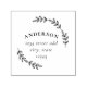 Custom-designed self-inking return address stamp featuring hand-drawn style wreath with personalized family name and address.