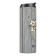 An elegant gold hibiscus floral wreath where you can customize it on a rustic grey wood backdrop where gold glittery drops rain down creating chic farmhouse vibes.