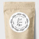 Custom-designed wedding favor round stickers/labels featuring "Let Love Brew" encircled in hand-drawn laurel wreath. Personalize with bride and groom/couple's names and wedding date for a touch of style on wedding coffee grounds/beans or tea favors and gifts.