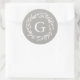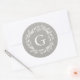Custom round stickers personalized with your family monogram initial or other custom text. Use the design tools to change the background colour and fonts to further customize your own unique design.