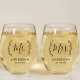 Rustic Wreath Mr. and Mrs. Newlywed Gift Stemless Wine Glass