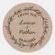 Thank you sticker with a rustic olive branch wreath on an image of brown kraft paper. Designed to complement the "rustic wreath" collection.