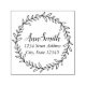 Custom-designed self-inking return address stamp featuring hand-drawn style foliage wreath with personalized name and address.