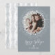 Rustic Wreath & Silver Brush Script Holiday Photo Card