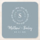 Rustic Wreath Wedding Monogram | Dusty Blue Square Paper Coaster