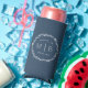 Full-colour custom printed can coolers make a fun and functional wedding favour your guests will love! Personalize the template with the bride and groom's names or monogram initials. Add your wedding date, the city, state or venue name or any other custom text. This modern rustic logo-style design has a floral wreath frame with your monogram initials in navy blue and white colours. Use the design tools to choose any background colour, edit the fonts or upload your own photos to create a completely custom wedding favour to match your wedding colours and style!