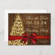 Rustic Xmas Holiday Save Date | Tree & Red Ribbon Announcement Postcard