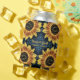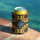 Rustic wedding yellow sunflowers country denim blue jeans printed beer can cooler. Floral pattern beautiful print design drink holder. Image copyright Marg Seregelyi Photography.