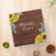 A pretty sunflower recipe binder featuring bright yellow sunflowers on a rustic wood background. Personalize it with the name of your choice. Designed for you by Blackberry Boulevard.