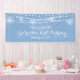 Add this personal touch to your child's First Birthday party. Welcome your guests with a personalized indoor banner. It has a blue textured background with a dreamy scene featuring string lights and snowflakes, Personalize by adding a name and a date. Check out our many other matching products in this collection to make your celebration complete and customizable.