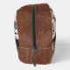 Delightfully rustic, large western style toiletry bag, aka Dopp Kit, has a dark tooled leather background and a faux antique lace panel with a row of applied pearls. Personalize it with the easy to use template provided. The font is completely customizable should you want to use a different style type face.