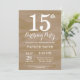 Rustique 15ème anniversaire Invitation. Arrière - plan rustique en bois. Anniversaire vintage du Retro. Anniversaire enfant. Invitation Anniversaire garçon ou fille. 13ème 15ème 16ème 18ème 20ème 21ème 30ème 40ème 50ème 60ème 70ème 80ème 90ème 100ème, Tout âge. Pour plus de personnalisation, cliquez sur le bouton "Customiser" et utilisez notre outil de conception pour modifier ce modèle.