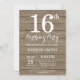 Rustique 16ème anniversaire Invitation. Arrière - plan rustique en bois. Anniversaire vintage du Retro. Anniversaire enfant. Invitation Anniversaire garçon ou fille. 13ème 15ème 16ème 18ème 20ème 21ème 30ème 40ème 50ème 60ème 70ème 80ème 90ème 100ème, Tout âge. Pour plus de personnalisation, cliquez sur le bouton "Customiser" et utilisez notre outil de conception pour modifier ce modèle.