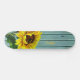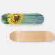 Elégant skateboard girly, avec des graphismes d'un aqua peint en bois. L'illustration vintage d'un grand tournesol jaune orne le fond du tableau, avec un texte personnalisé jaune doré, au milieu. Personnalisez ce joli skateboard pour vous-même ou comme une excellente idée cadeau.