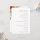 Guidez vos invités à travers votre journée spéciale avec cette carte élégante de programme de mariage floral. Doté d'une aquarelle douce aux tons chauds d'automne, d'une calligraphie moderne et d'une disposition épurée et minimaliste, ce programme est le parfait mélange de charme rustique et de style intemporel. Personnalisez avec vos noms, la date du mariage et les détails de la cérémonie personnalisée pour créer un souvenir que vos invités chériront. Parfait pour les mariages de automne, les cérémonies de grange rustique, les fêtes de jardin et les événements romantiques.