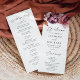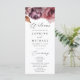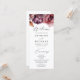 Programme de mariage floral d'automne rustique avec une bordure supérieure de fleurs de chute d'aquarelle et feuillage dans les tons marsala, bordeaux, violet, brun et orange. Le bouquet floral d'automne est complété par un script de calligraphie moderne. Personnalisez le devant du programme de mariage floral boho d'automne avec vos noms, la date et l'emplacement du mariage, et l'ordre de la cérémonie. Le programme inverse pour afficher une liste de votre mariage. Conçu pour coordonner avec notre collection Rustique de mariages floraux d'automne.