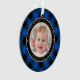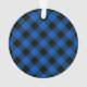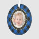 Cet adorable ornement de Noël à thème rustique pour les nouveaux grands-parents présente une photo de bébé sur le devant bordée d'un cadre circulaire doré et noir sur un arrière - plan plaid de buffle bleu et noir. Les mots de la typographie de l'or lisent " lire Notre premier Noël comme grands-parents ♥" avec le nom de votre petit-enfant et l'année suivante pour personnaliser. Fait un cadeau unique pour les grands-parents de la première fois. Conçu par l'artiste ©Susan Coffey.