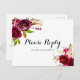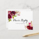 Cette carte postale rsvp au menu rustique bordeaux est parfaite pour un mariage moderne. Le design est composé de fleurs rose, rousse, rouge, bordeaux et bordeaux à aquarelle avec feuillage vert.