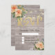 Modèles de la carte de réponse de mariage RSVP - Faux Gold Foil Script with Peach White Roses Floral and String Lights on Rustic Wood Arrière - plan. Un Design Parfait Pour Votre Grand Jour ! Tous Les Style De Texte, Couleurs, Tailles Peuvent Être Modifiés En Fonction De Vos Besoins.