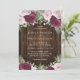 Ce faire-part de mariage rustique aux fleurs bordeaux et rousses, au bois de grange et à la dentelle rustique est parfait pour inviter vos invités à votre fête de mariage rustique bordeaux et rose vif. Conception entièrement personnalisable. Éléments correspondants disponibles.