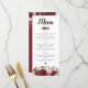 Cartes de menu mariages florales élégantes avec un arrière - plan blanc classique à l'avant, un ensemble de fleurs florales marsala rouge, bordeaux et rose vif, et une option de menu modèle.======================================================================================================================================= Pour plus de personnalisation, cliquez sur le bouton "Customiser" pour modifier ce modèle. Tous les styles, couleurs et tailles de texte peuvent être modifiés selon vos besoins. Vous trouverez d’autres articles mariages correspondants dans mon magasin www.zazzle.com/special_stationery, mais si vous ne trouvez pas ce que vous cherchez, veuillez me contacter.
