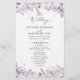Cet élégant programme de mariage de notre collection Lavender Pressed Floral présente des fleurs d'aquarelle violette avec des vignes vertes délicates, associées à une police de caractères de script moderne. Parfait pour toute saison. Pour effectuer des modifications anticipées, sélectionnez Personnaliser -> Modifier à l'aide de l'outil de conception.