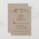 Cette carte RSVP est idéale pour un mariage de bois. Le design d'inspiration nature présente la silhouette d'une forêt de pins et de montagnes sur papier imitation kraft. Créez votre liste d'invités mariages et votre liste de chansons de piste de danse tout à la fois ! Cette carte de réponse mariage demande aux invités s'ils pourront assister à votre mariage, et aussi quelle chanson les amènera à danser. Veuillez noter que ceci n'est pas imprimé sur du papier kraft réel. C'est un graphisme de haute qualité fait pour ressembler à du papier kraft.