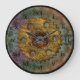 Personalize this unique vintage look steampunk style wall clock with your family name. Just edit the formatted text in the easy Zazzle editor. Created in textured look images of ornate rusty steampunk elements in blues and brassy gold and rust tones, with graphics from Zaza at www.scrapandtubes.com and www.CustomClockGraphics. Great gift for a guy or vintage art lover.