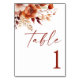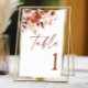 Rusty Burgundy Brown Floral Flower Wedding Table Number