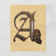 A gothic font initial A textured in rusty metal, decorated with a fantasy sword and a rusty knights helmet. Unique monogram for fantasy art and medieval knights lovers!