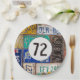 Old rusty license plate collection for 72nd birthday party.