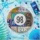 Old rusty license plate collection for 98th birthday party.