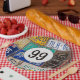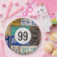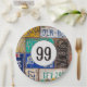 Old rusty license plate collection for 99th birthday party.
