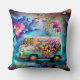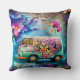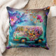 Rusty old Combi Van with Flowers Butterflies Throw Pillow