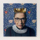 Ruth Bader Ginsburg wearing a crown with vintage Medway tapestry background.
