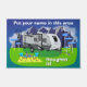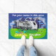 This doormat can be customized to show your name on top. When used outside of your RV, people will know who they are talking to when they see you. Non-slip rubber that won't crack or buckle, this mat resists fading, mould, and mildew and can be easily cleaned with a hose. This version is a travel trailer similar to a Coachmen Apex Nano. It can be used indoors or out and makes a great welcome mat for your campsite, wherever you may go. To customize the name, click on the text "put your name in this area" and change it to whatever you want. If you don't see the text change on the actual design, you haven't done it quite right. You might have to double-click on some devices to be able to change it. Happy camping!