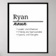 Introducing the "Ryan, Boy Personalized Name Definition Poster" – a perfect addition to any child's room or nursery. This custom poster features the name "Ryan" along with its definition, providing a personalized and meaningful touch to your decor. Crafted with high-quality materials, it ensures durability and a premium look. The elegant design suits various interior styles, making it a versatile gift for birthdays, baby showers, or any special occasion. Add a unique, personalized element to your home with this charming poster.
