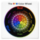 This RYB (Red, Yellow, Blue) colour wheel has names, RGB hex codes, mixes (shades/tones/tints), temperatures (warm/cold), and orders (primary/secondary).