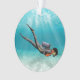 Male S.C.U.B.A plongeur en équipement complet plongée dans l'eau bleue de l'océan.