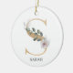 Letter S monogram floral. Letter S in golden brown texture accented with green watercolor compound leaves, flower blossoms and gold dust. Personalized with name in matching font.